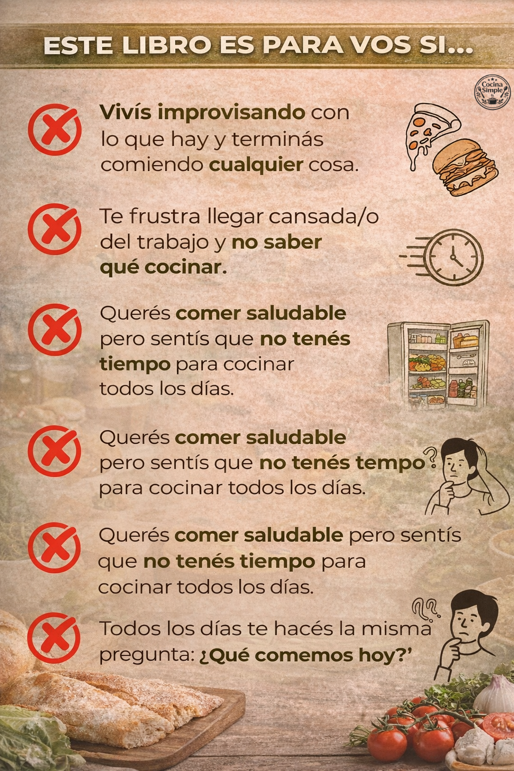 Si sentís que no te ayudó a organizar tu cocina o resolver tu semana, te devolvemos el dinero sin preguntas.